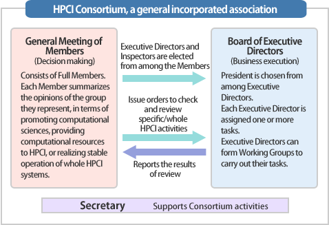The HPCI Consortium aims to establish a responsible management system in the form of a general incorporated association. The Consortium consists of full and associate members and is supported by the membership fees from full members.